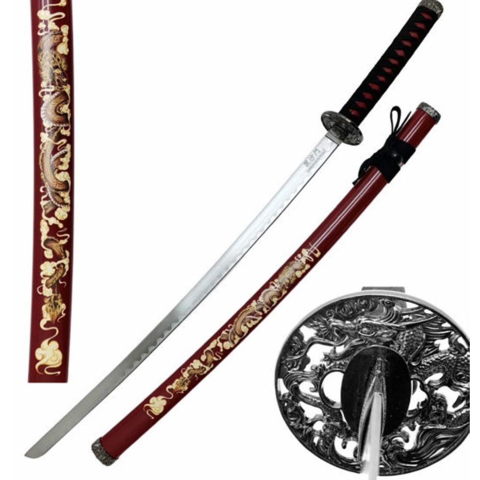 40″OVERALL KATANA WITH DRAGON PRINT ON SCABBERD BURGUNDY COLOR
