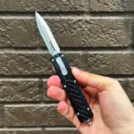 OTF AUTOMATIC KNIFE 4.5″ CLOSED, 7.5″ OVERALL, SILVER STAINLESS STEEL DAGGER BLADE, BLACK ZINC ALLOY WITH CARBON FIBER HANDLE WITH MOLLE NYLON SHEATH