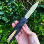 DELTA FORCE USA 9″OVERALL OTF KNIFE 4″GOLD LIGHTNING BLADE COMES WITH BELT CLIP AND SHEATH