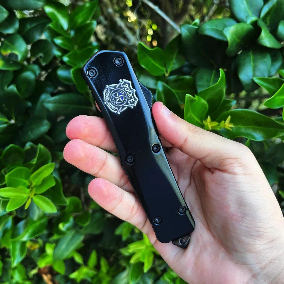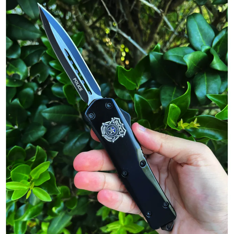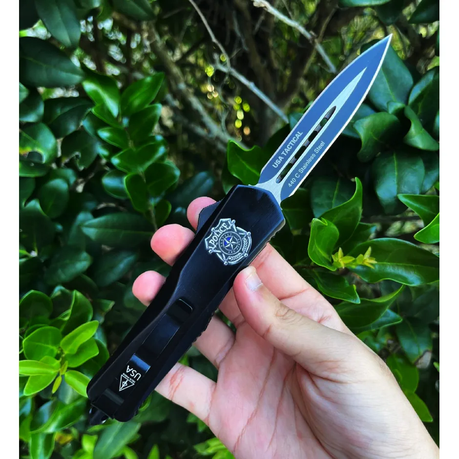 DELTA FORCE USA (POLOCE OTF)5.5″ CLOSED, 9 OVERALL” OTF KNIFE.BLACK STAINLESS STEEL BLADE & BLACK HANDLE WITH MOLLE NYLON SHEATH