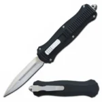 9″ OVERALL, OTF AUTOMATIC KNIFE. 3.75″ CLOSED SATIN STAINLESS STEEL BLADE 5.5″ BLACK ZINC ALLOY HANDLE INCLUDES MOLLE NYLON SHEATH WITH BELT LOOP