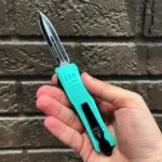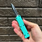 DELTA FORCE USA 4.15″ CLOSED, 7″ OVERALL, OTF KNIFE. BLACK/SATIN STAINLESS STEEL BLADE, TEAL ZINC ALLOY HANDLE WITH MOLLE NYLON SHEATH