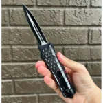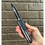 OTF AUTOMATIC KNIFE 5.5″ CLOSED, 9″ OVERALL, STAINLESS STEEL DAGGER BLADE, 3D U.S FLAG PLASTIC HANDLE WITH CLIP INCLUDES NYLON SHEATH